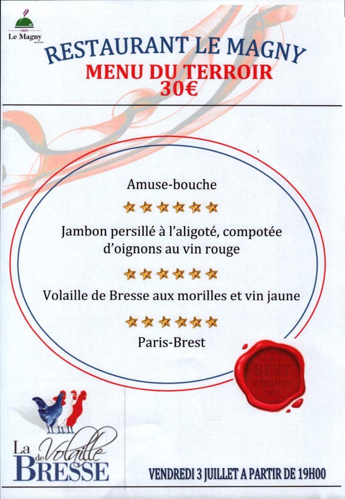 Menu du terroir proposé le 3 juillet 2020